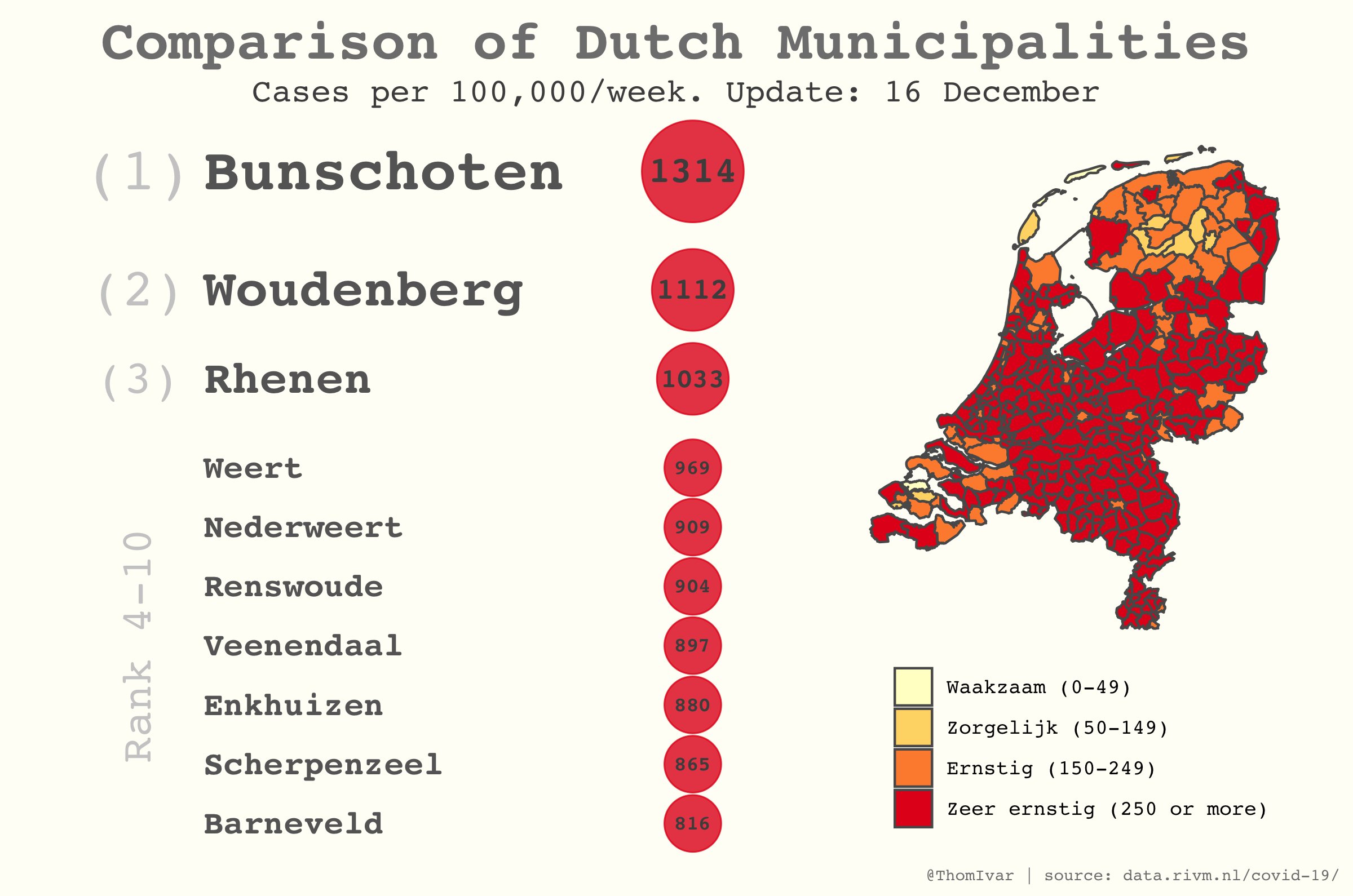 Het is heel egostisch, maar ik heb liever dat Amsterdam en Rotterdam zoveel besmettingen hebben, dan dat er gemeentes in mijn omgeving meer dan 30 besmettingen hebben.quote:Op woensdag 16 december 2020 15:16 schreef Benny het volgende:
