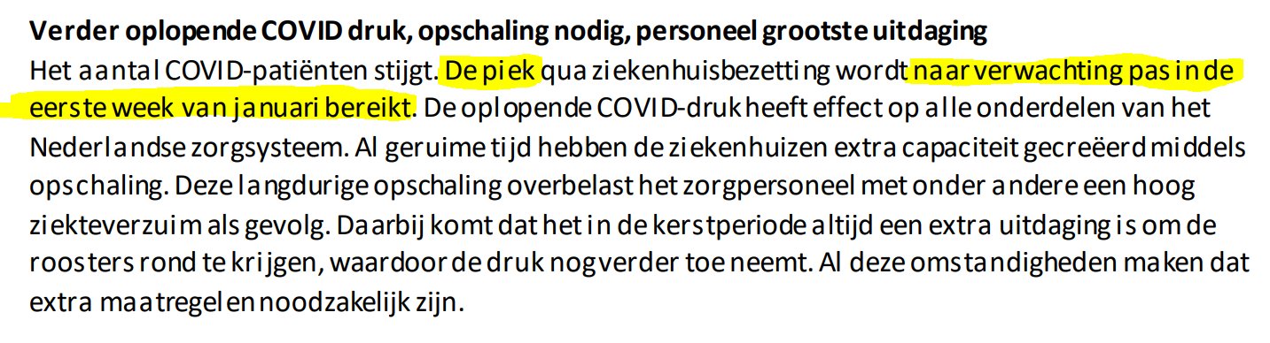 Ja, ik snap daar ook niks van. Men doet continu alsof ze verrast en overvallen zijn, terwijl het (met de woorden van Hugo zelf!) juist als een olietanker vrij langzaam en voorspelbaar een bepaalde kant op beweegt. Je kunt niet alles voor zijn, maar het is echt wel duidelijk wat zo ongeveer de situatie over een paar weken gaat zijn. Je kunt op z'n minst drie scenario's voorbereiden waarvan er een vrij dicht tegen de realiteit aan zal zitten.quote:Op dinsdag 22 december 2020 13:26 schreef chratnox het volgende: