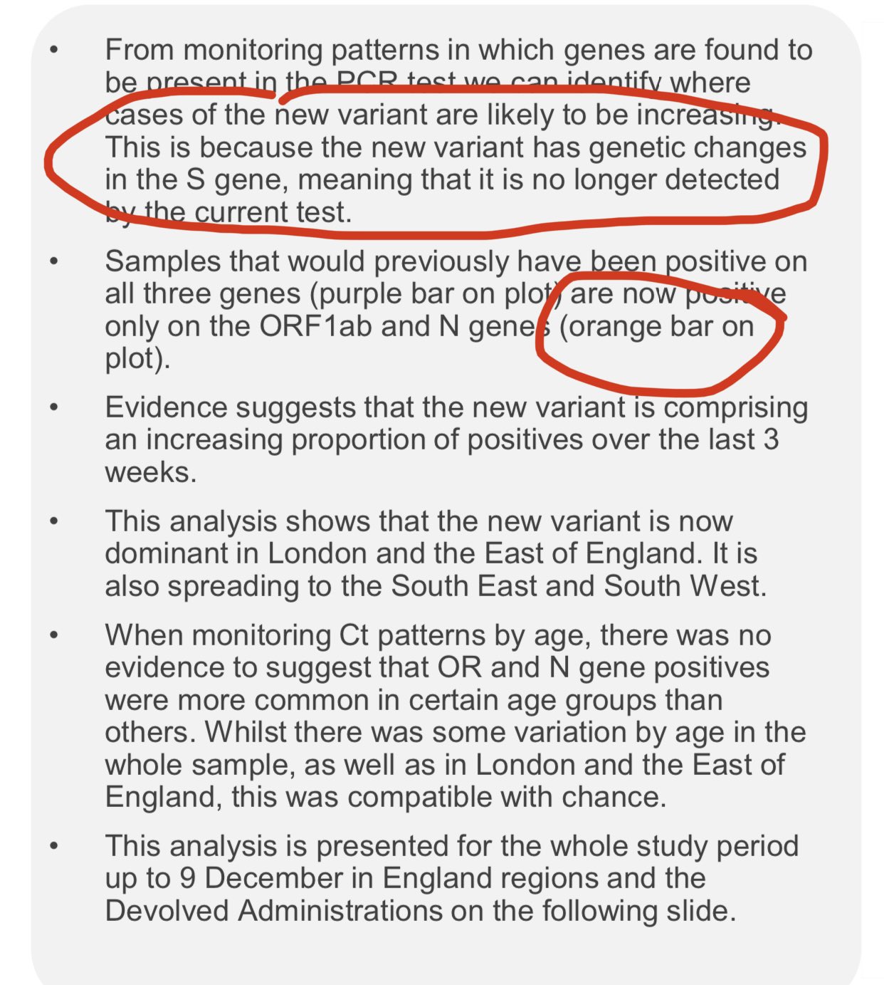 quote:The UK reports that the deletion 69-70 in the spike protein of the variant causes a negative result from S-gene
