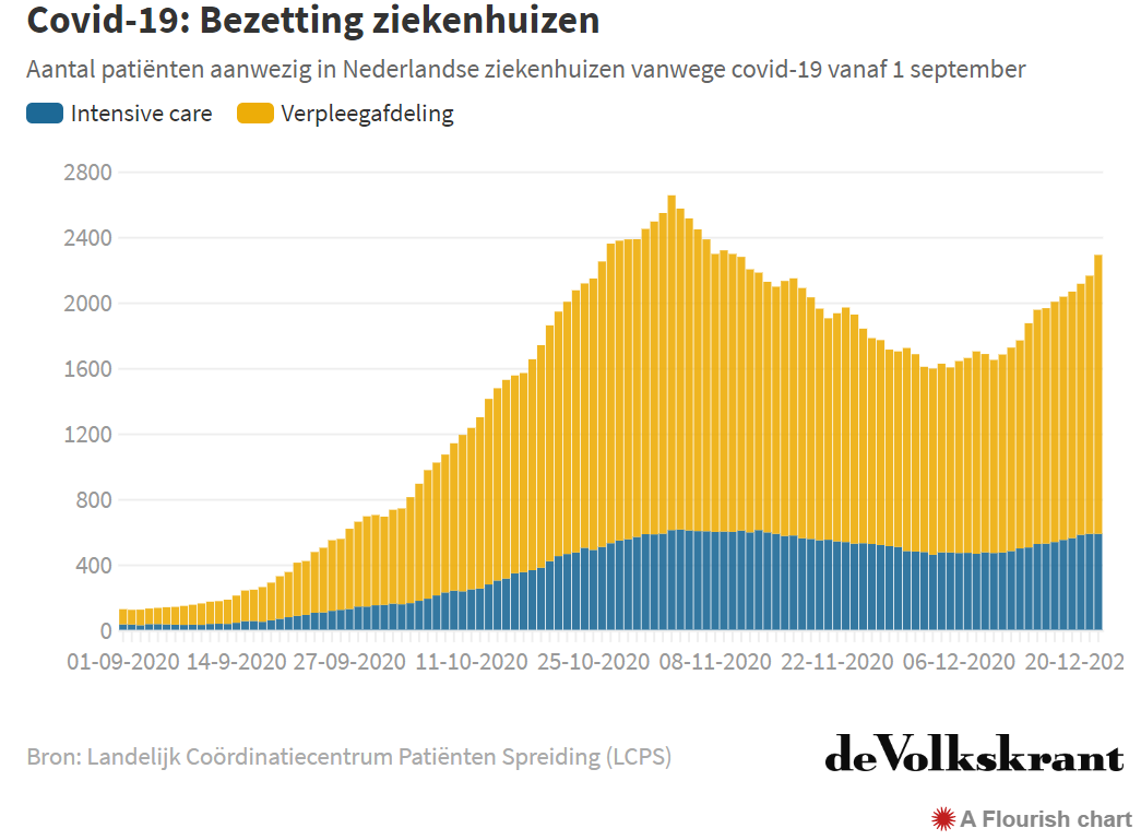 Denk dat we de ziekenhuis- en IC-cijfers zien stijgen de komende week. Dat is het effect van die lompe besmettings-stijging laatste 2 weken.quote:Op dinsdag 22 december 2020 15:16 schreef Momo het volgende: