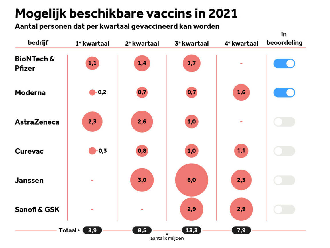 Ga er maar vanuit dat de grote massa op z'n vroegst juli of zo wordt, maar ik houd zelf rekening met augustus/september. Als in: dan beginnen we met die groep(en), dus dat wordt het hele kalenderjaar 2021 nog vaccineren in Nederland. | |