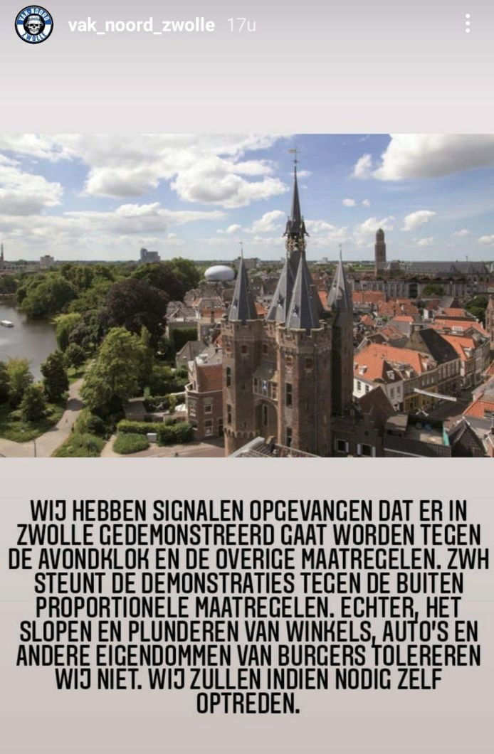 ik vind dit eigenlijk niet kunnen, in principe geeft hij avondklok overtreders een compliment omdat ze het tegen zwaardere overtreders opnemenquote:Ook compliment aan leden van de m-side FCDB, die ik tegen kwam bij het ziekenhuis om dit te beschermen. Ook in de stad kwam ik ze tegen om te helpen! (mag ook gezegd worden).