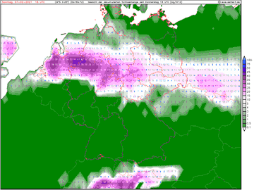 | Arpege tekent de sneeuw weer wat zuidelijker in. Hoop niet dat dat nog verder doorzet want dadelijk heeft zelfs het midden niks meer over | |