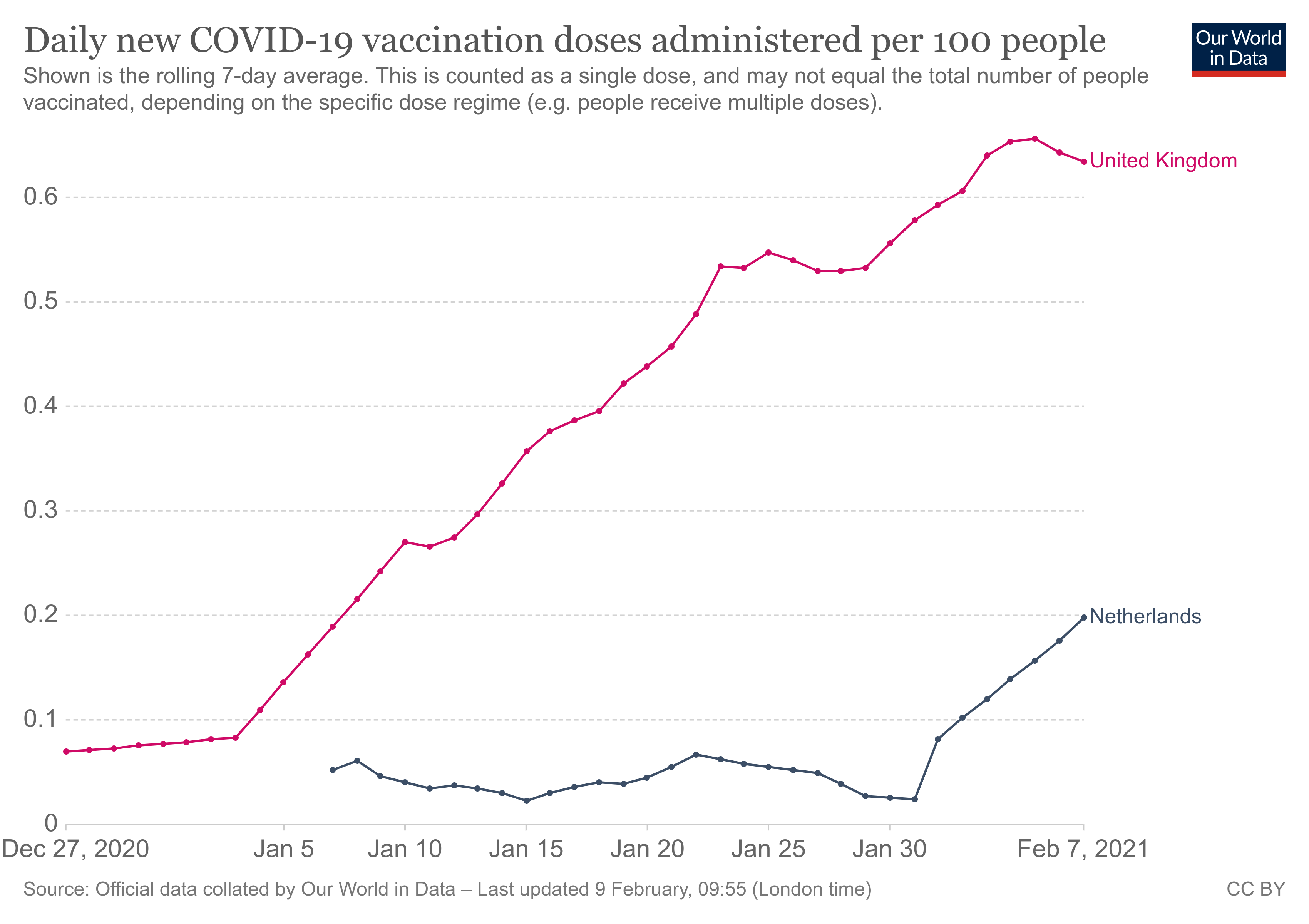 Lager cijfers zeggen heel veel, want heel veel mensen schenen thuis te blijven vanwege sneeuwval van afgelopen zondag. Maar aan andere kant werkt de avondklok heel goed tegen groei van Britse variant. Dus ik verwacht komende weken nog wel veel bijgewerkte cijfers. De sneeuwval heeft gezorgd voor daling die versneld was. Echter is ook te verwachten dat het virus weer gaat verspreiden zodat de ouders kinderen wegbrengt en ophaalt van school. | |