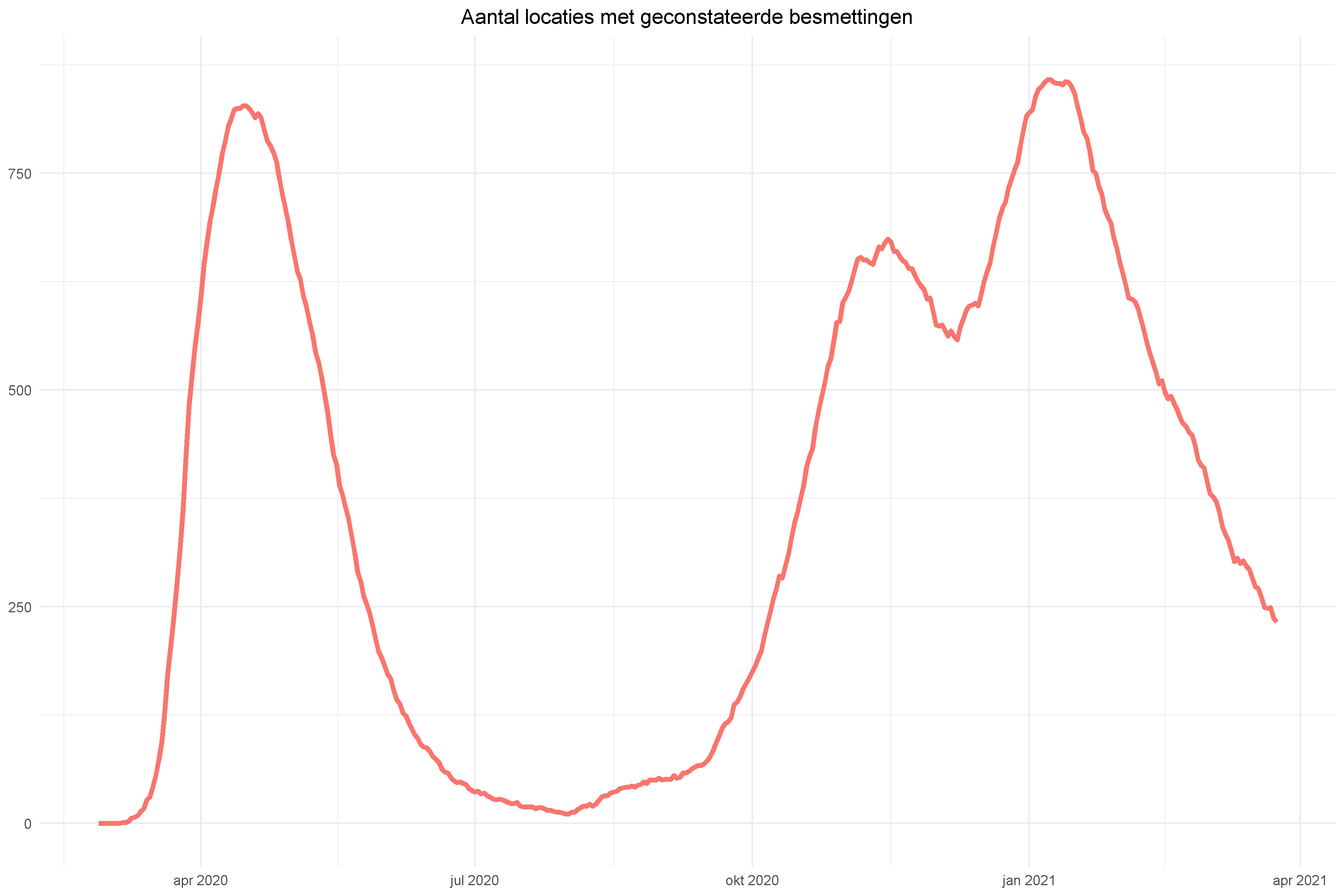 Volgens mij klopt die hoeveelheid besmette locaties helemaal niet. Ook bij de gehandicapten zorg, het lijkt wel alsof het flink achterloopt op de werkelijke hoeveelheid. Als ik de totaal aantal besmettingen voor de verpleeghuizen van de laatste 10 dagen bij elkaar optel is dat zo'n 272, terwijl er op het dashboard nog staat dat er 237 locaties zijn met besmette mensen.