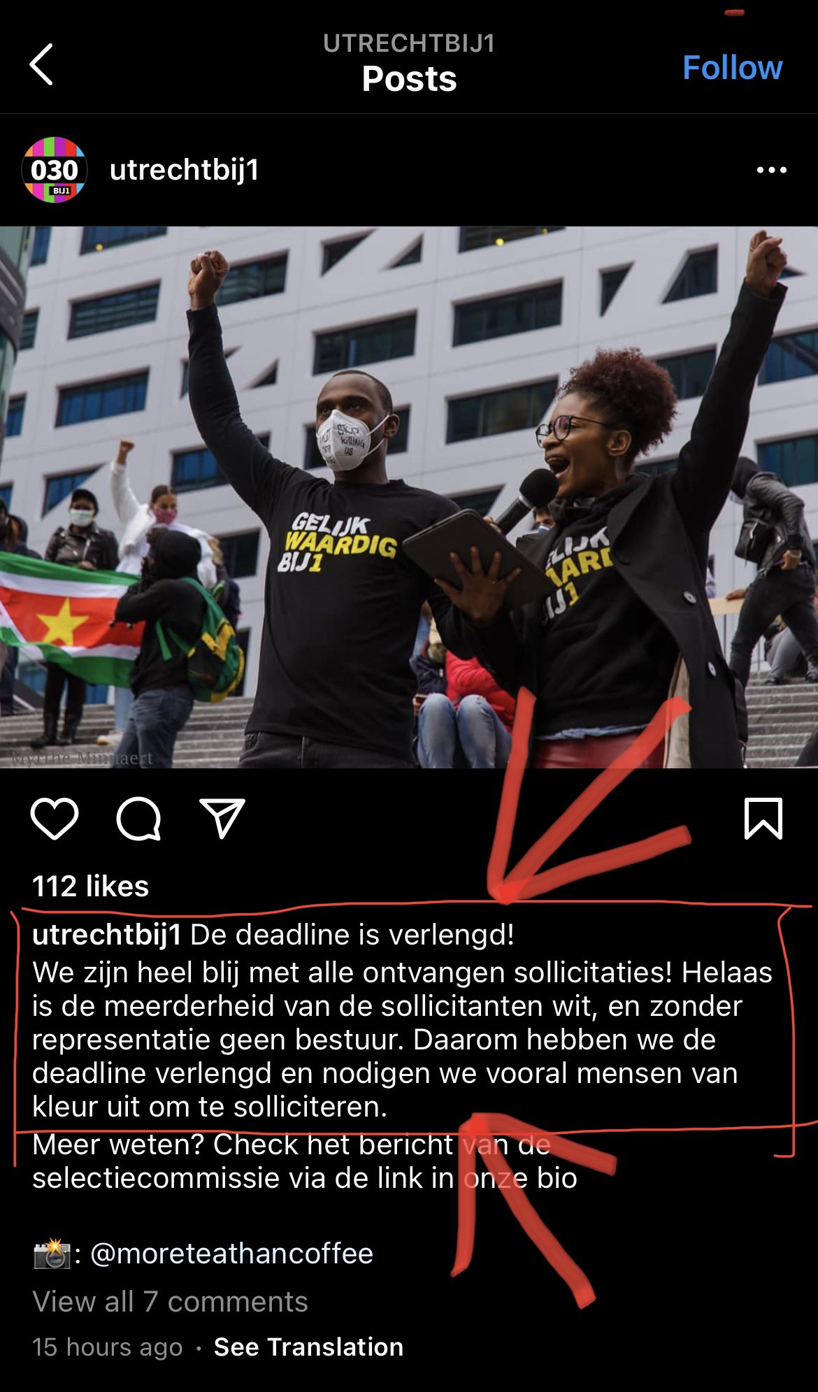 Heb je inzicht in de verhouding bij de sollicitaties dan? Wie zegt dat het niet 99% blank is dat solliciteert? In een stad als Utrecht lijkt het me niet meer dan redelijk dat je als inclusieve partij op zijn minst iemand van kleur erin wil.quote:Helaas is tot nu toe een meerderheid van de kandidaten die zich hebben aangemeld voor het bestuur wit. Aangezien 'representatie' een van de kernwaardes is voor BIJ1, is er geen weg vooruit voor een nieuw bestuur zonder een goede vertegenwoordiging van mensen van kleur.