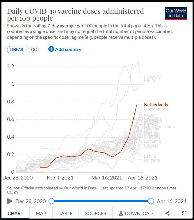 Ik ben nog sceptisch, of de vaccinatiecijfers op waarheid berusten, en niet te optimistisch te worden ingeschat.quote:Op zondag 18 april 2021 12:10 schreef DireStraits7 het volgende: