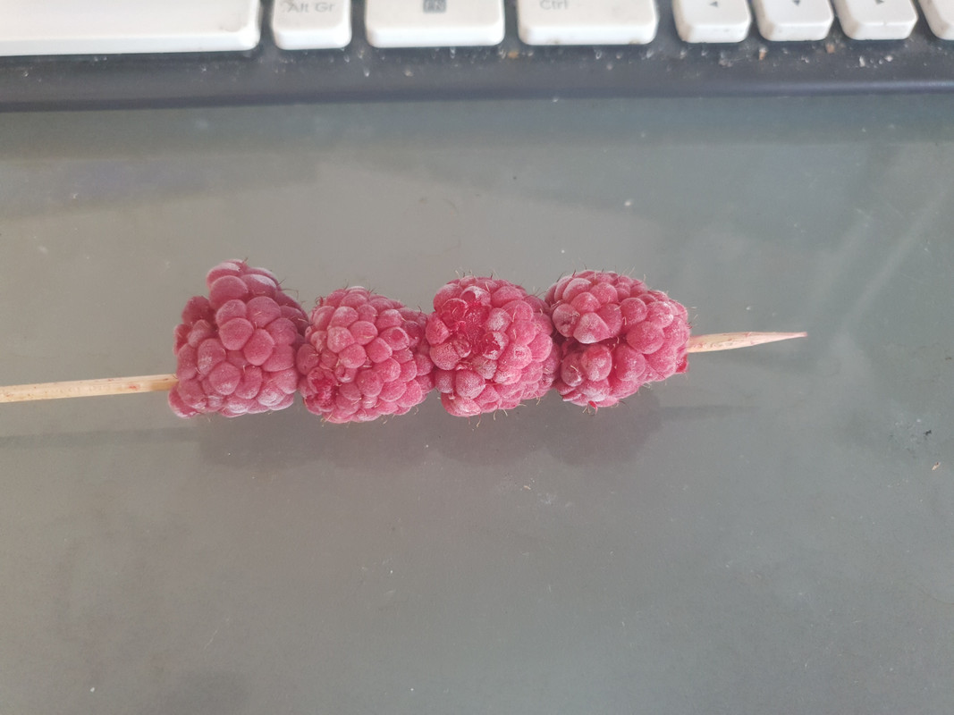 Dat is raar.... zoete frambozen smaken zuur als je ze ingevroren eet
