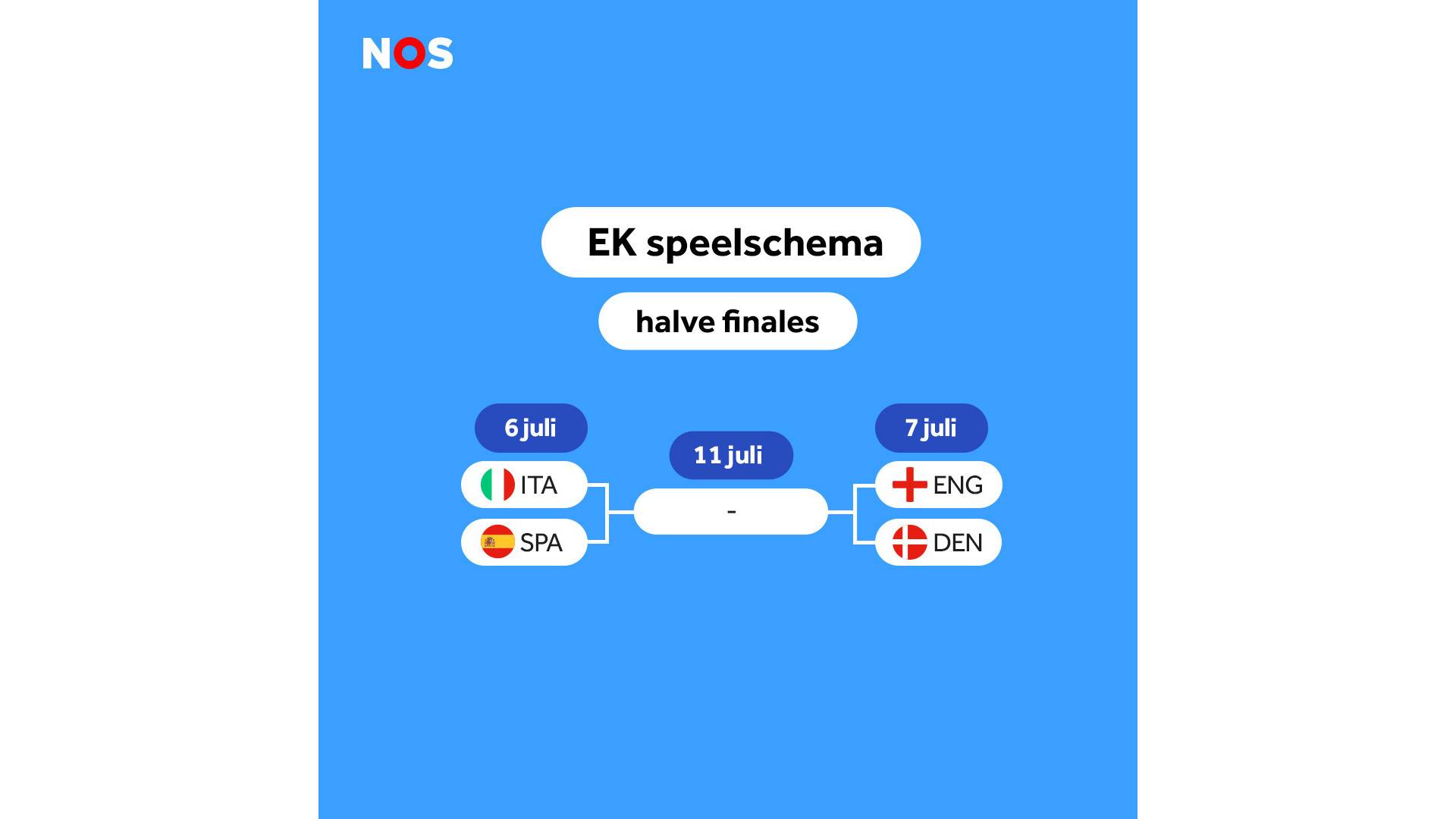 | De opstellingen van Itali en Spanje voor de onderlinge halvefinalewedstrijd op het EK zijn bekend. De kraker begint dinsdagavond om 21.00 uur op Wembley. De winnaar treedt zondag in de finale aan tegen Engeland of Denemarken. De Spaanse spitsen lvaro Morata en Gerard Moreno zitten op de bank. Luis Enrique kiest voor een voorhoede bestaande uit Ferrn Torres, Dani Olmo en Oyarzabal. Itali raakte sterspeler Leonardo Spinazzola vorige week kwijt door een gescheurde achillespees: de linksback viel in de kwartfinale tegen Belgi uit, staat maandenlang aan de kant en wordt dinsdagavond vervangen door Emerson Palmieri. Het is voor Emerson zijn tweede basisplaats op het EK, nadat hij in de afsluitende groepswedstrijd tegen Wales (1-0) al meedeed. Aan de andere flank van de defensie kan Mancini weer beschikken over Alessandro Florenzi. De rechtsback hield een blessure over aan de eerste groepswedstrijd tegen Turkije en werd vervolgens vervangen door Giovanni Di Lorenzo, die dinsdagavond opnieuw het vertrouwen krijgt en aan de aftrap verschijnt. Het grootste twijfelgeval bij Spanje was Pablo Sarabia. De aanvaller liep vrijdag tijdens de kwartfinale tegen Zwitserland een blessure op en werd halverwege afgelost door Dani Olmo. Tijdens de persconferentie van maandag gaf Luis Enrique al aan dat Sarabia 'niet fit' is. Verder kende Spanje weinig serieuze blessureproblemen, maar men moet zich na twee opeenvolgende wedstrijden van 120 minuten wel zorgen maken om de vermoeidheid van de spelers. Centrumverdediger Aymeric Laporte, de enige Spanjaard die nog geen minuut miste op het EK, trainde in het weekend individueel in de sportschool. Hij is echter wel inzetbaar en start vanuit de basis. Eric Garca krijgt achterin de voorkeur boven Pau Torres. Opstelling Itali: Donnarumma; Di Lorenzo, Bonucci, Chiellini, Emerson; Barella, Jorginho, Verratti; Chiesa, Immobile, Insigne. Opstelling Spanje: Unai Simn; Azpilicueta, Laporte, Eric Garca, Jordi Alba; Busquets, Koke, Pedri; Dani Olmo, Ferran Torres, Oyarzabal. | |