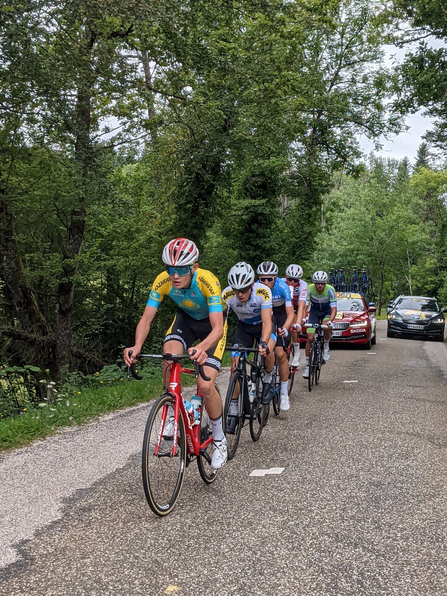 Om toch de belofte van wat oneliners te vervullen zeg ik dat Valentin Gotzinger (Oostenrijk) op zijn 19e al nationaal kampioen werd bij de profs. Martin Messner (weer Oostenrijk) laat dit jaar erg goede dingen zien in de tweede lijn. Ben Healy (Ierland) is een fenomeen, die wordt 100% ergens prof. Yuhi Todome (Japan) werd dit jaar 9e op Mt. Fuji, groots. Alex en Nico Vinokourov (Kazachstan) kunnen er nog steeds geen ene tering van. Arthur Kluckers (Luxemburg) is oppassen geblazen, goede klimmer. Savva Novikov (Rusland) fietst voorlopig achteruit, maar heeft een reputatie. Kristijan Hocevar (Slovenië) beviel me voor de Vredeskoers niet en bevalt me nu ook niet. Nutteloze prof, goede belofte. Valere Thiebaud (Zwitserland) komt vers uit Tokyo, waar hij meedeed in de achtervolging. Fabio Christen (Zwitserland) is geen Jan, maar staat op het lijstje van de hoop desalniettemin. Lucas Kubis (Slowakijke) tamelijk rap, behoorlijke tijdrijder. Jacques Lebreton (Rhone Alpes, dat is een lokale ploeg), kan goed klimmen maar wordt binnen het peloton uitgelachen om zijn daalkunsten. Of gebrek aan. Echt waar. Alex Baudin (eigenlijk AG2R, hier Rhone Alpes), acceptabele tijdrijder. Clement Braz Afonso (Bourgogne), goede klimmer. Yael Joalland (Bourgogne), klimmer. Antoine Huby (Hauts de France), crosser. Was recent leider in de Elzas, toen hij bergop meeging met Umba en Reichenbach. Enzo Paleni (Hauts de France), vergelijkbaar met de lijn Cosnefroy. De Afrikaanse ploegen, in dit geval vertegenwoordigd door de CMC-ploeg uit Aigle van de UCI, is altijd een fantasische rubriek hier. Halen zelden de finish. Het is wel eens voorgekomen dat ze ooit een ploegentijdrit op dag drie hebben moeten afwerken met twee man omdat de rest al in de remmen had geknepen. Tenzij die Rwandees heb ik niet de indruk dat het dit jaar weer gaat gebeuren. Marc Pritzen is nota bene nationaal kampioen van Zuid-Afrika en Henok Mulubrhan rijdt dikke klassementen. We gaan het meemaken.