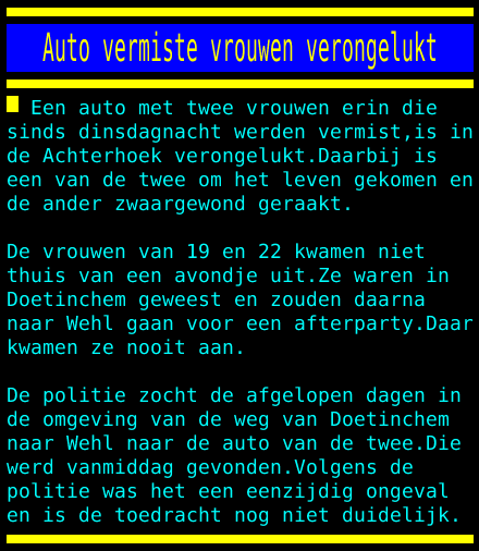 Ze waren onderweg naar Wehl, daar woonde een van de twee wonen de ouders van een van de tweequote:Op donderdag 12 augustus 2021 18:22 schreef Starhopper het volgende: