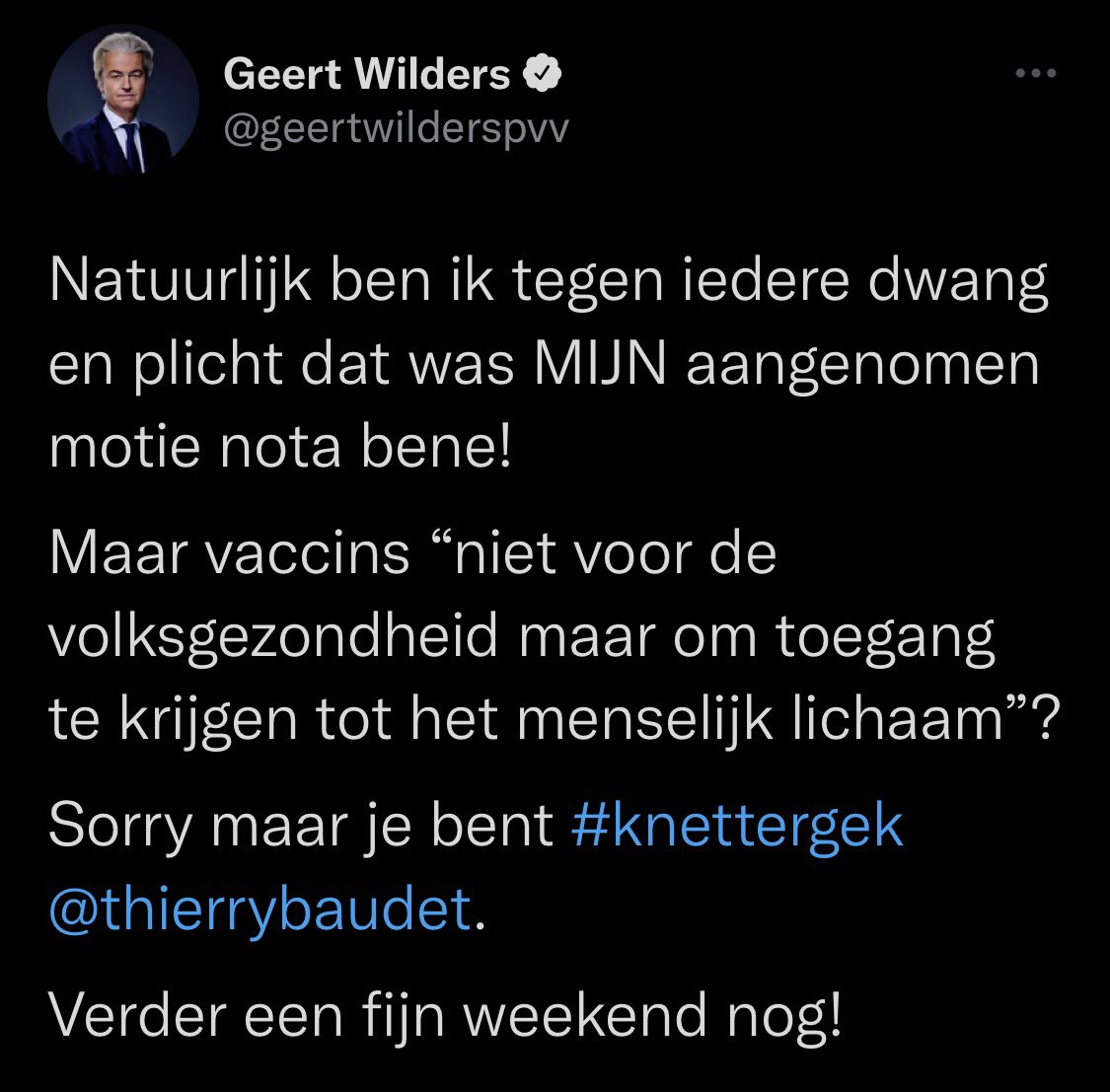 Als zelfs Geert Wilders je knettergek vindt.quote:Op zaterdag 14 augustus 2021 16:51 schreef Momo het volgende: