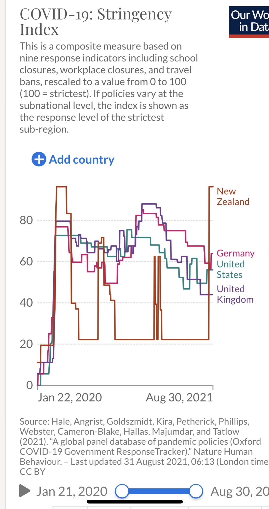 Dat heeft er natuurlijk alles mee te maken dat ze daar geprobeerd hebben om het virus helemaal buiten de deur te houden. En dat is best een hele tijd gelukt. Als er nul cases zijn, hoef je ook geen maatregelen op te leggen. | |