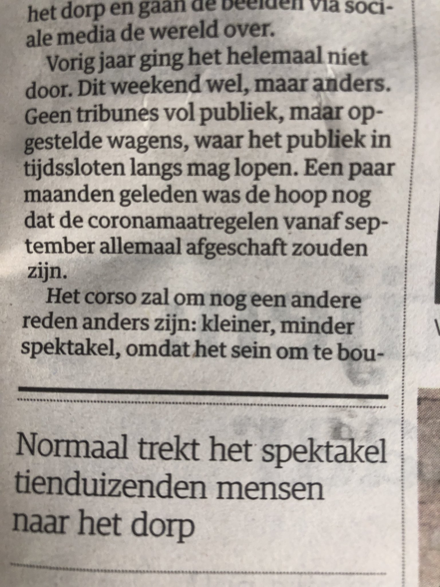 Wat fijn dat je bij de gratie van het kabinet na het reserveren van een tijdslot naar het corso mag komen kijken zegquote: