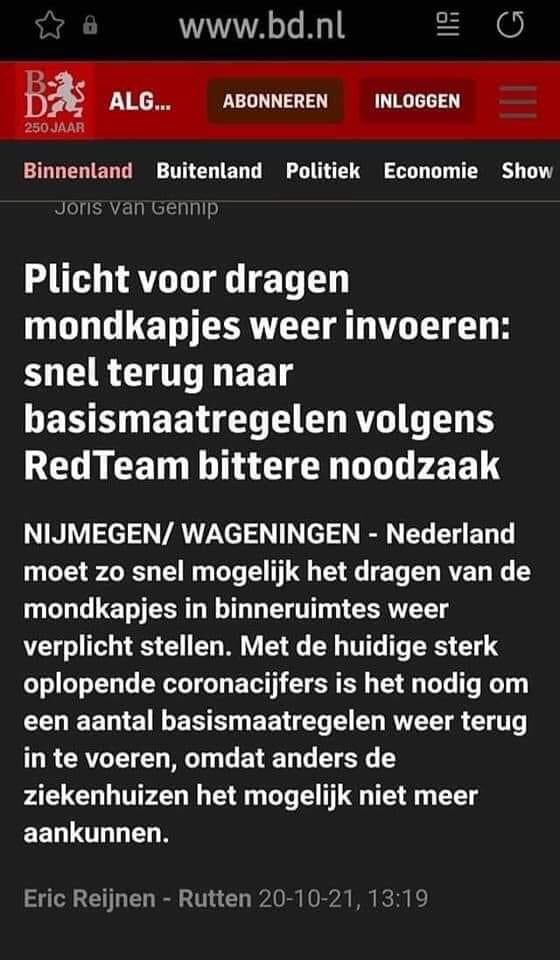 Vooral de vaccinatie mantra eindeloos blijven herhalen ?quote:Op dinsdag 19 oktober 2021 10:30 schreef Isdatzo het volgende: