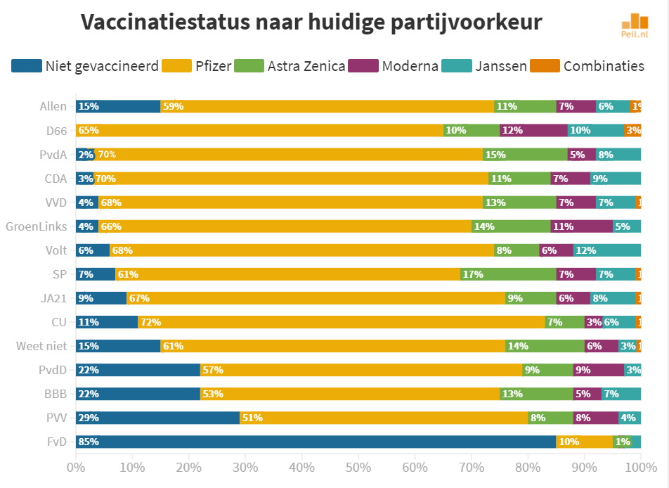 Oxford/AstraZeneca, Pfizer, Moderna en Johnson&Johnson (Janssen).