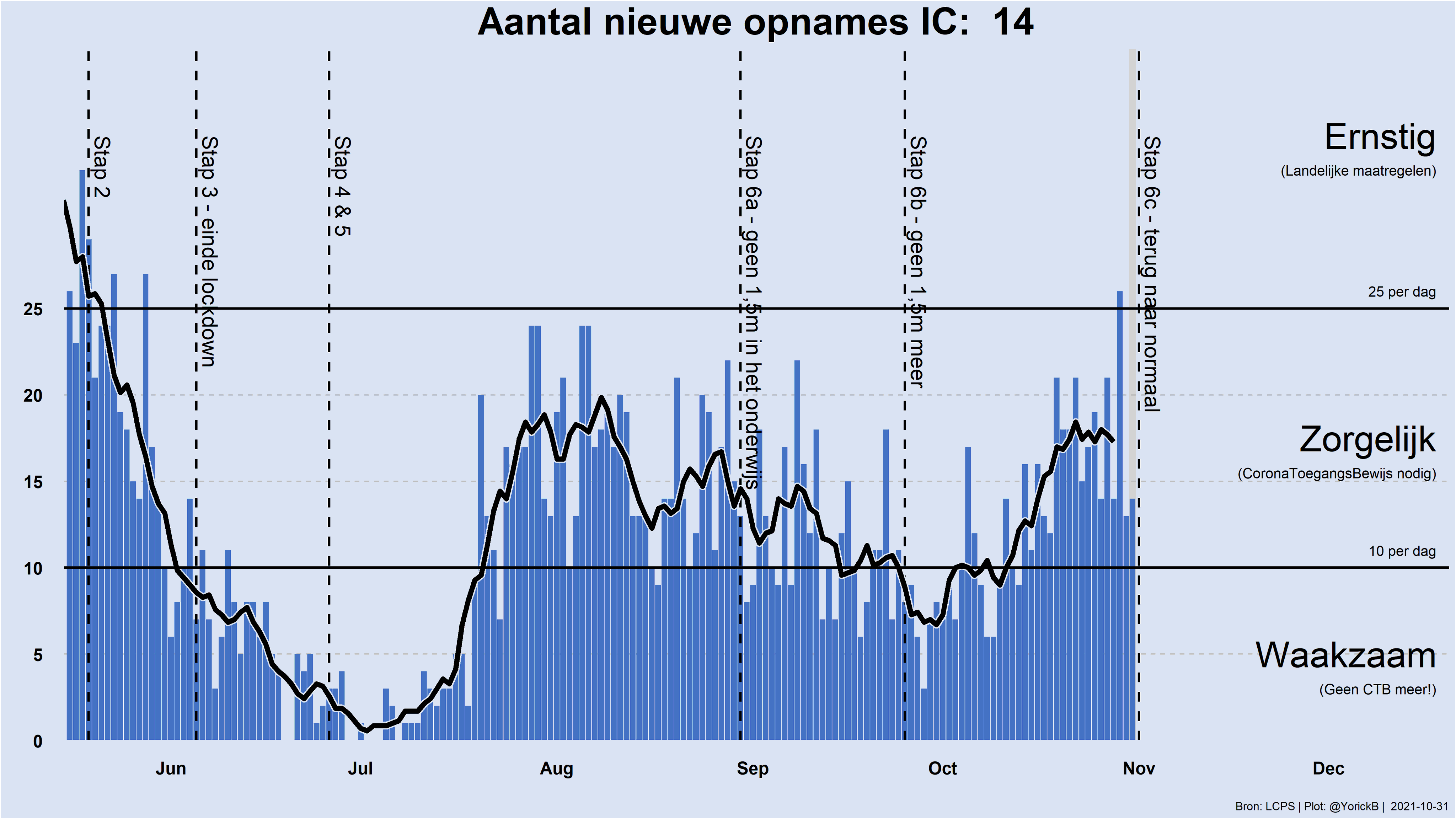 Hmm ja zou kunnen toch? Het vaccin is de remmer waardoor men wel even opgenomen wordt, maar vervolgens thuis weer uit kan zieken en niet door moet rchting IC. Het is en versoepelingen en seizoenseffect en misschien een langzaam afnemende bescherming bij gevaccineerden en grote groep ongevaccineerden. Dat alles tesamen..quote:Op maandag 1 november 2021 13:42 schreef DireStraits7 het volgende: