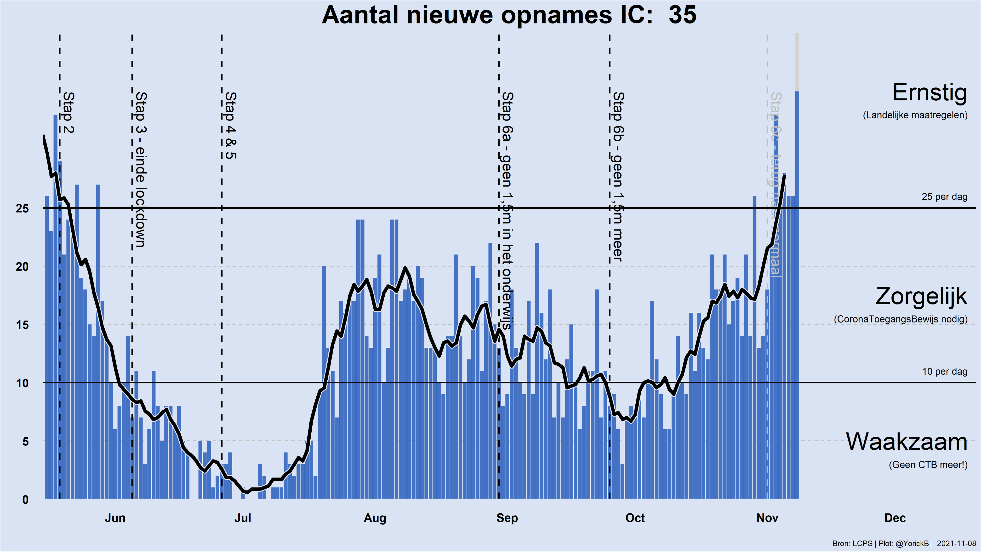 Ja, deze reeks is goud waard als je informatie nodig hebt. Corona en al die maatregelen zijn frustrerend, maar af en toe staat er weer een goede post tussen waarom die maatregelen nodig zijn, ook al lijken ze voor je gevoel niet te helpen. De grafiek met het verschil in ziekenhuisbezetting ten opzichte van vorig jaar, vond ik erg mooi om te zien. Ondanks de vele besmettingen gaan er veel minder mensen het ziekenhuis in. Zonder deze reeks had ik dat niet geweten en was mijn mening over vaccins een stuk negatiever. | |