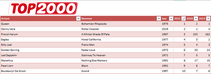 Even snel opgezocht, en volgens mij is dat zelfs nog nooit eerder gebeurd. Zelfs in 2016 bleef Pink Floyd op 9 staan.quote:Op vrijdag 3 december 2021 17:15 schreef Scorpion_17 het volgende: