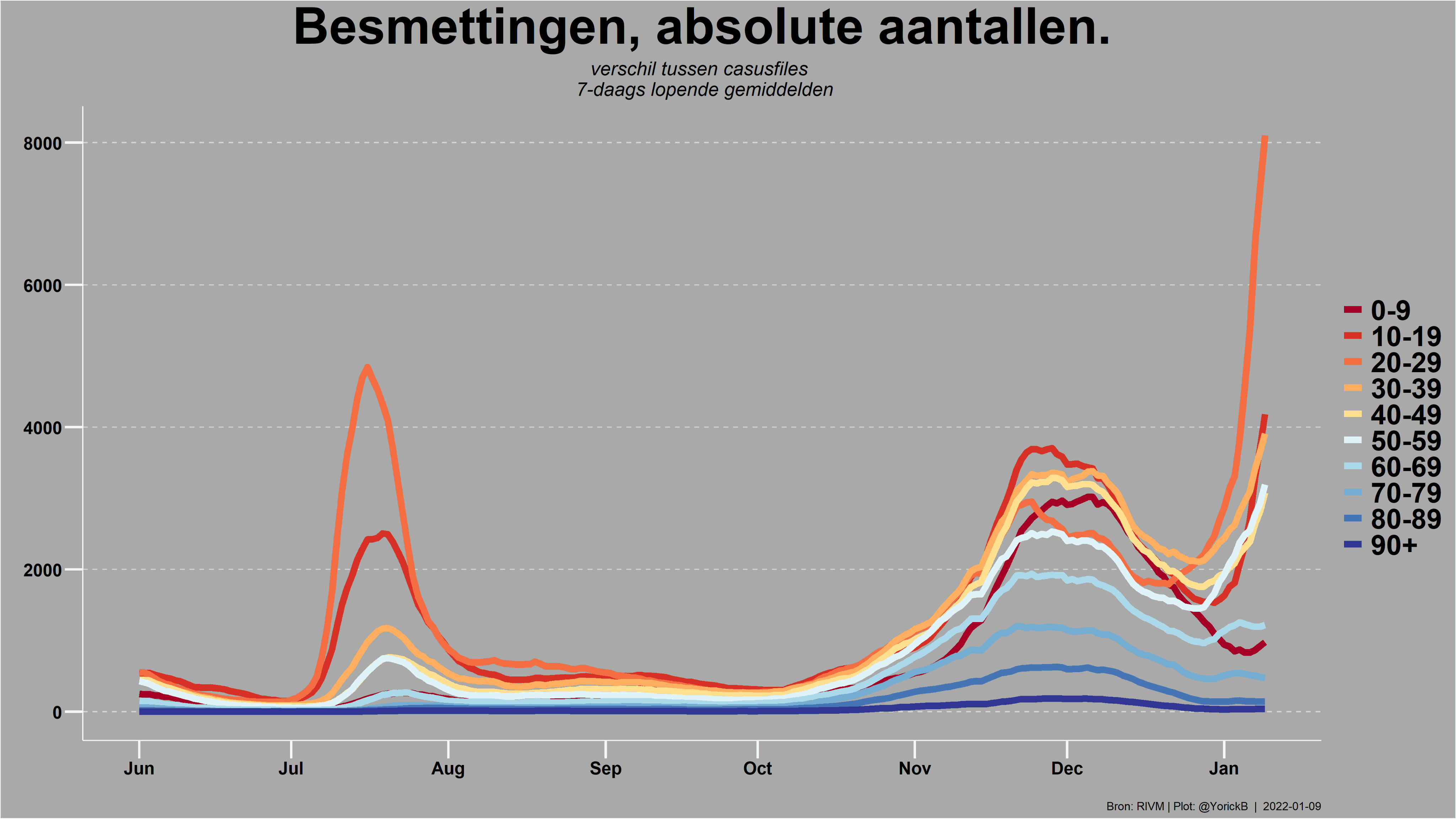 Je mag wel concluderen dat bijzonder veel mensen besmet zijn geraakt tijdens de feestdagen gezien de aantallen, ons 'geluk' is dat het vrijwel niet de 60+ groep heeft getroffen (door eigen genomen maatregelen, boosters etc.)