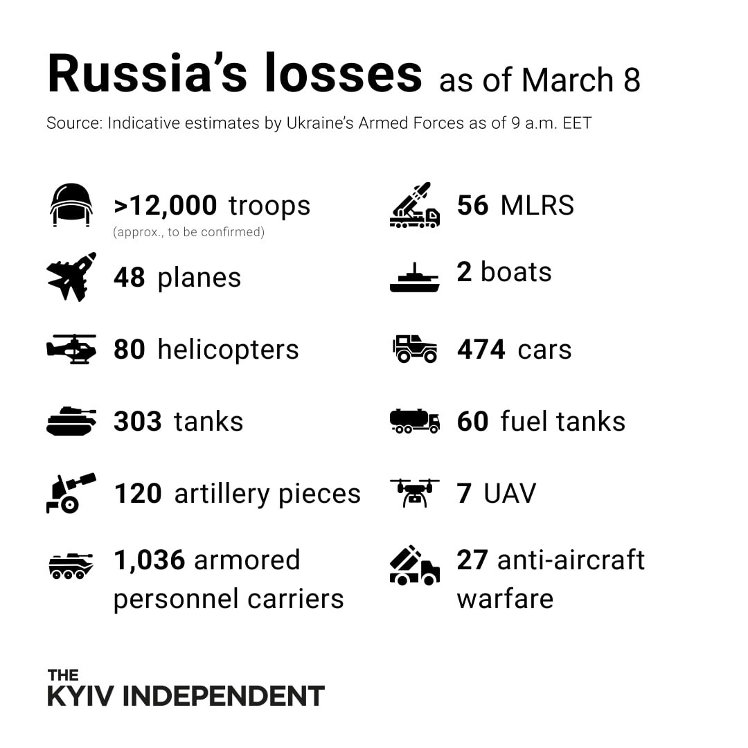 quote:Humanitarian corridors reportedly opened from Kyiv, Cherhihiv, Sumy, Kharkiv and Mariupol