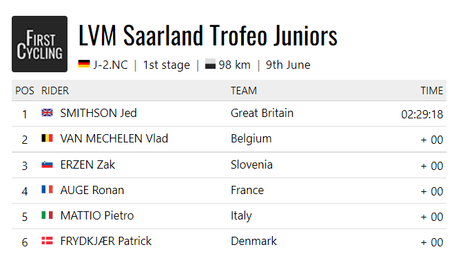 Terwijl profrenners die zondag pas in actie te komen te bang zijn om de sneeuw te trotseren voor verkenning zijn de beloften gewoon door het inmiddels gesmolten witte deken aan het racen. De Triptyque is iets minder internationaal dan de afgelopen jaren, maar fijn dat hij weer terug op de kalender is. Lorenzo Milesi, beter gekend als de Italiaanse versie van Evenepoel, wint zojuist de eerste rit door in de laatste twee kilometer weg te schieten. Het had geen tien meter langer moeten duren, want hij stond volledig stil door de kramp. Fredheim kwam maar een haar tekort. | ||||