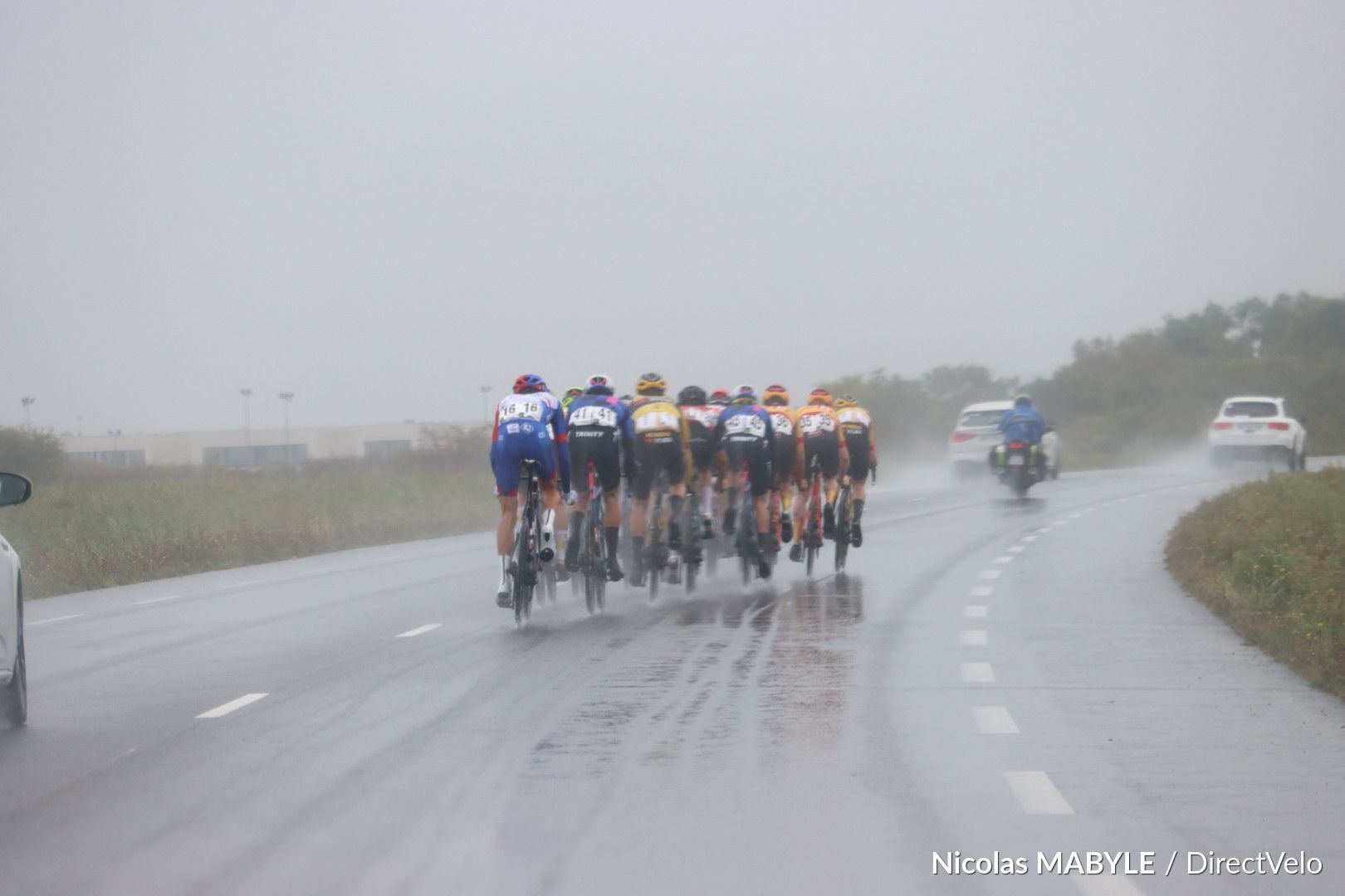 Laatste schop van het jaar zo'n beetje, maar l'Isard in de herfst heeft wel iets. Vorig jaar een kletsnatte etappe over Col d'Agnes, nu is de boel compleet verregent in de vlakte van Castelsarrasin. Jumbo, Trinity en FDJ gooien de straalmotoren aan en wat krijg je dan? Een peloton dat richting een achterstand van bijna een kwartier aankijkt. Reuben, Staunte-Mittet en Oliver Rees vooraan. o.a. Ook op de startlijst: Jules Jalabert. De zoon van Laurent. | ||||