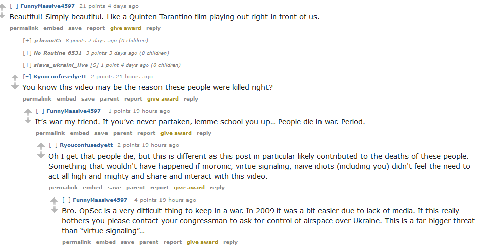 omdat ik het verschrikkelijk vind onder een spolier oekrainse soldaten tegen een burger maar zal ook wel fake zijn | |