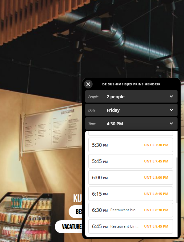 Sushi had voor corona ook al tijdvakken ivm het all you can eat concept