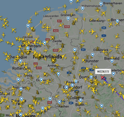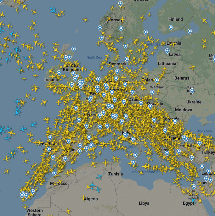 Ben echt altijd amazed hoe druk het luchtruim is. (ja ik weet dat het vliegtuigicoontje niet op schaal is ![]() | |