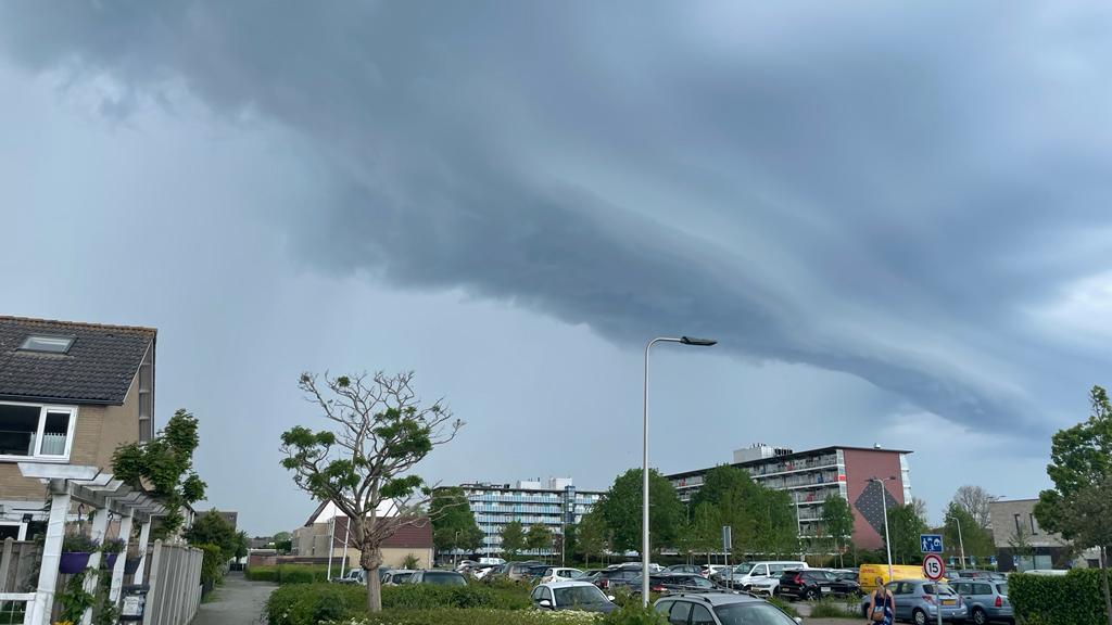 Komt nu ongeveer hier aan. Precies op het moment dat ik even naar de markt wilde uiteraard.Maar wel fijn die regen voor alle plantjes en akkers.