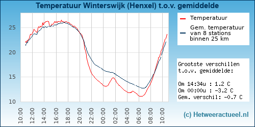 Tegen de 18°C in Brabant (volgens GFS zou het rond de 24°C moeten zijn)