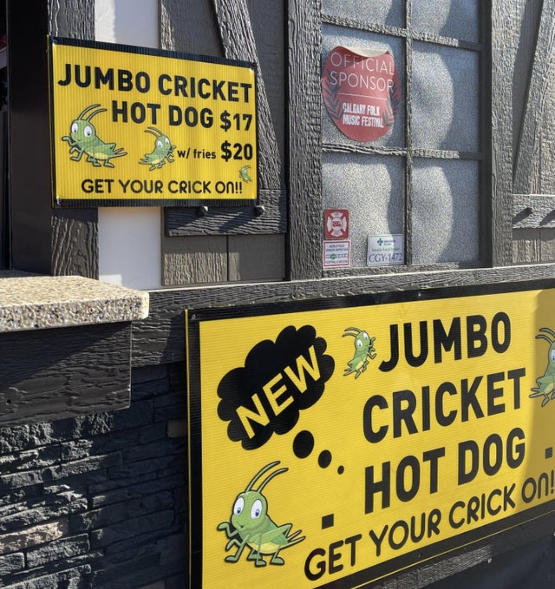 Maar niet duur, 17 dollar (CND) voor gemalen krekels in een kleffe bun.