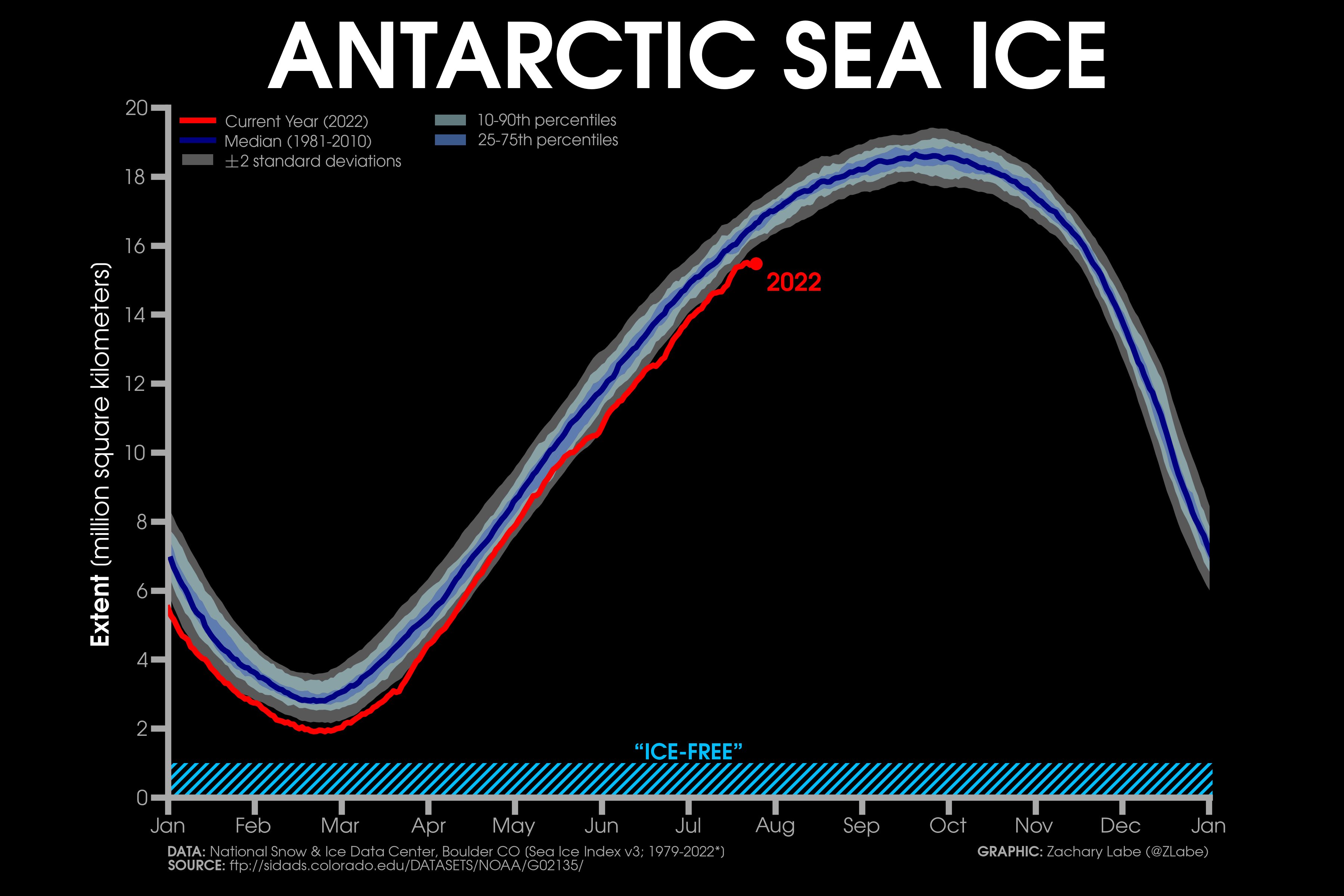 Deze vrouw heeft echt geen idee. Er ligt helemaal niet meer ijs dan ooit. Deze eeuw is het zelfs niet boven het gemiddelde geweest.quote:Op dinsdag 2 augustus 2022 10:03 schreef Bocaj het volgende: