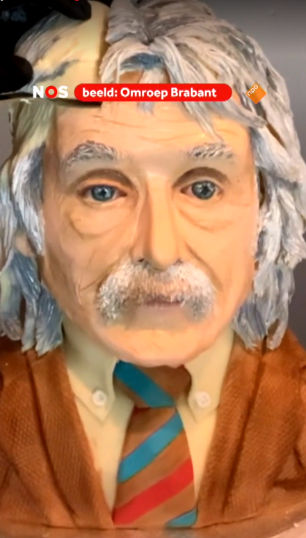 Dat liet Bond zich geen twee keer vertellen. Ze ging aan de slag met het hoofd van de oud-militair uit Roosendaal en kwam weer terug. "Het duurde geen drie jaar, maar drie dagen", lacht ze. De oud-militair geinde zelf: "Mijn oren hadden nog verder naar buiten gemoeten, maar daar was vast niet genoeg marsepein voor." Overigens bleek ondernemer en influencer Bas Smit het moeilijkst om te maken, vanwege zijn lachende gezicht.