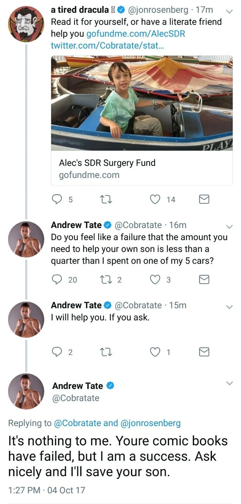 Die Tate lijkt me zo op het eerste gezicht best een mongool, maar die tweet van Greta is ook wel van schoolpleinniveau zegHeeft ze hem mooi tuk zeg, poeh poeh.