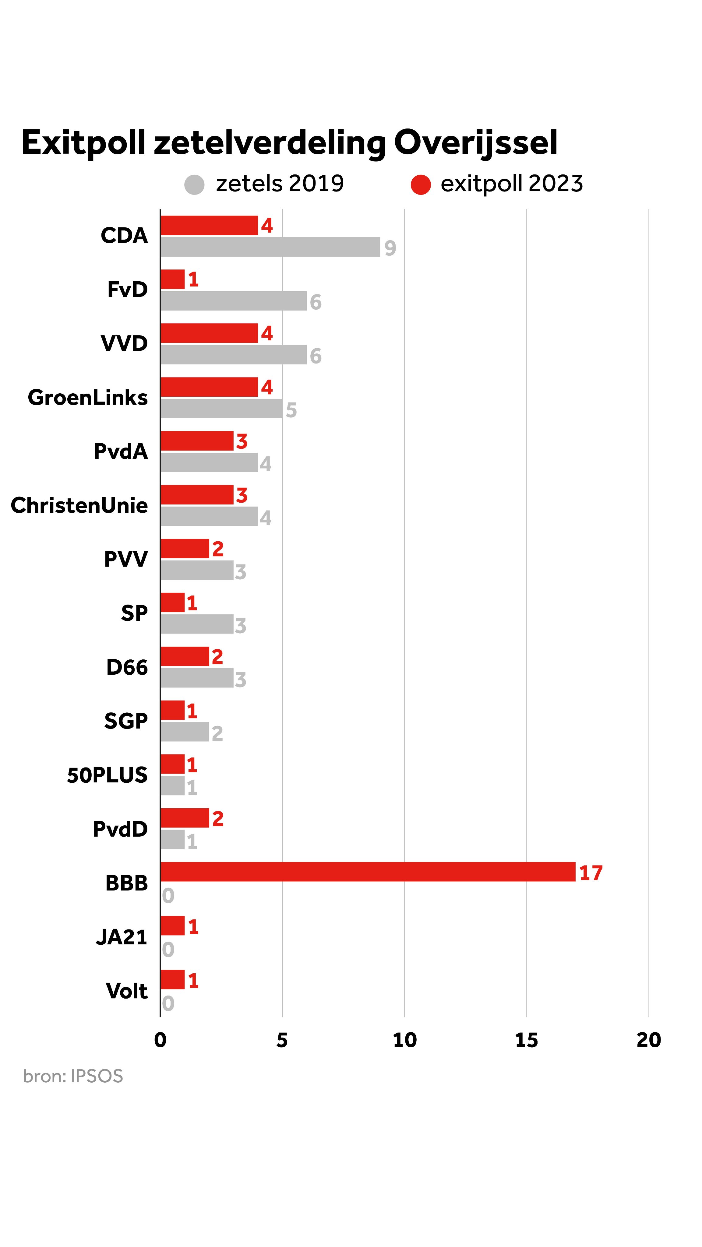 In Overijssel was de CDA nog heel groot in 2019, dat moet je ook meerekenen.quote:Op woensdag 15 maart 2023 21:29 schreef koos_vriendloos het volgende: