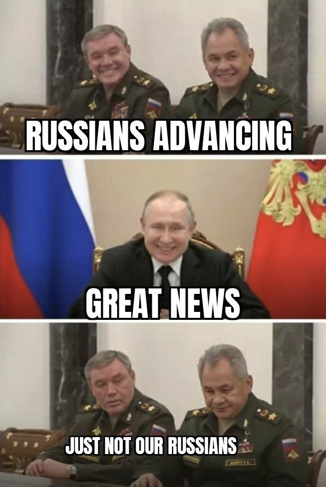 Maar het schetst bij mij niet het beeld dat het allemaal rooskleurig gaat voor ze hoor. Behalve bij het Kherson offensief. Maar dat ging dan ook heerlijk.