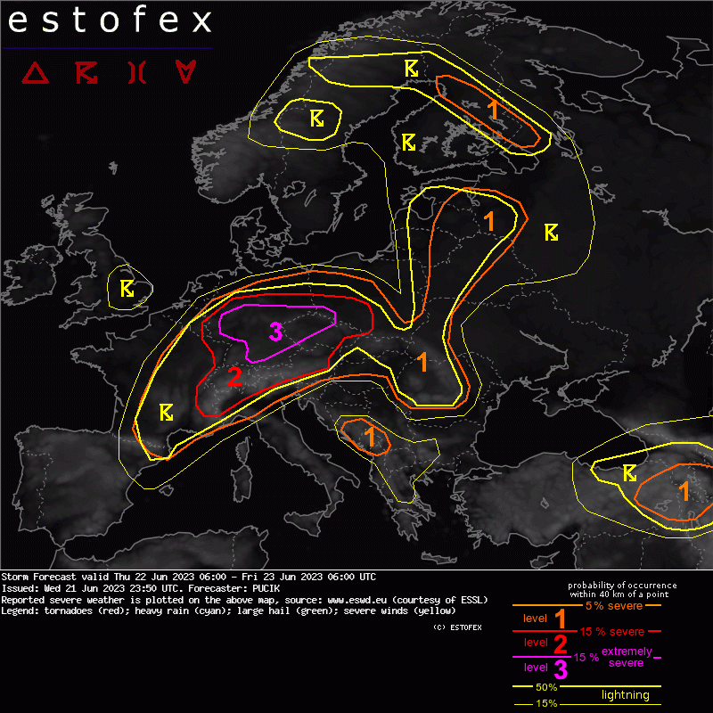 https://www.estofex.org/quote:A level 3 was issued across parts of Germany and Czechia mainly for damaging wind gusts, large to very large hail and (regionally) for tornadoes and heavy rainfall.