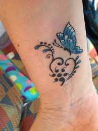 Niet heel bijzonder hoor, een kleine persoonlijke, vooral voor mezelf. Een bloem met een vlinder met een semicolon lichaam Ik ben nog aan het nadenken over de plek. Het moet makkelijk te bedekken zijn, ik wil hem zelf wel makkelijk kunnen zien en de plek moet een beetje bestand zijn tegen gewichtsschommelingen. Ben af en toe aan het testen met plakplaatjes | |