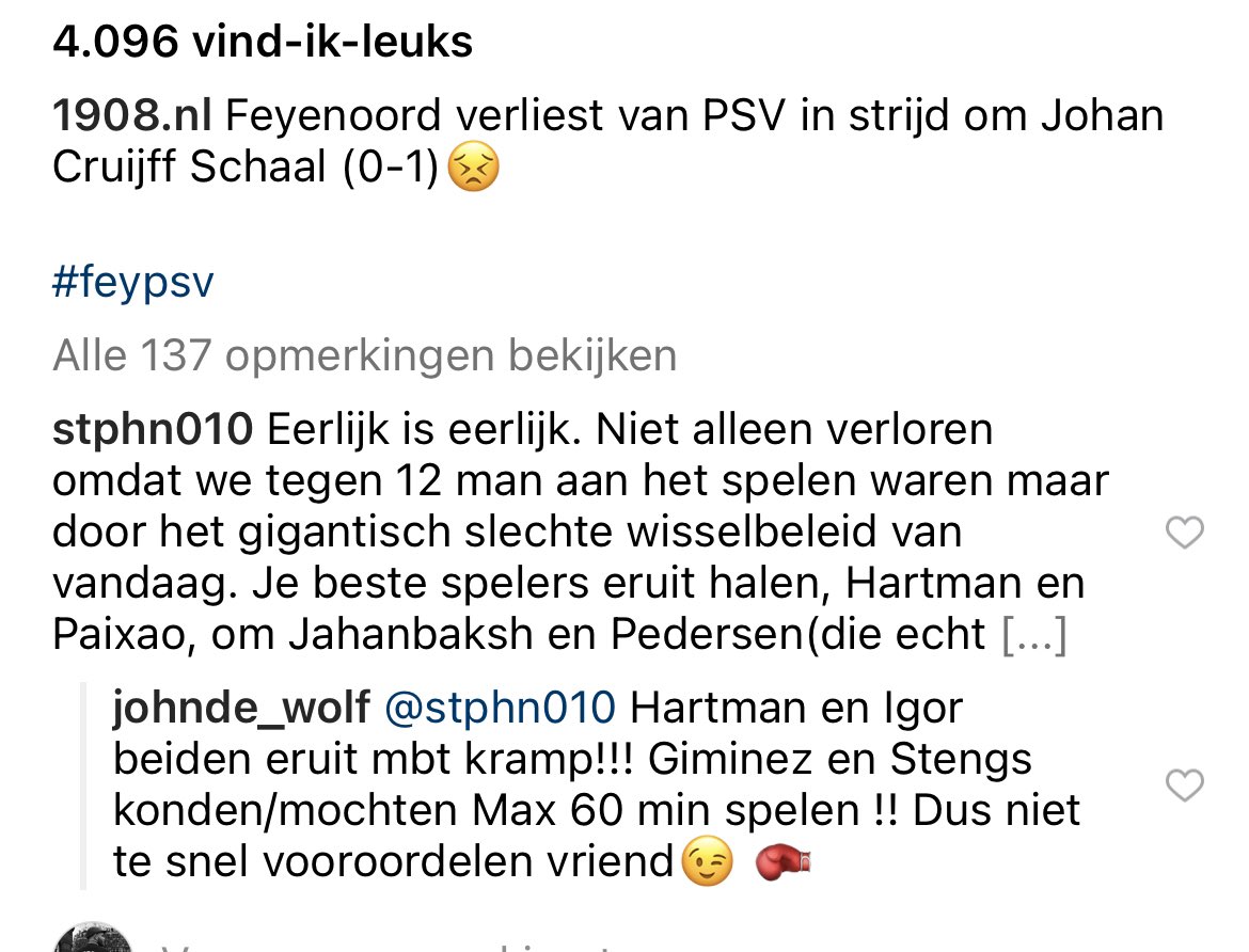 Graag wel even z.s.m. die automatisme erin slijpen Arne.quote:Bij Feyenoord is er na de nederlaag tegen PSV felle kritiek op de middenvelders. Ook wordt er direct gewezen naar het gemis van Orkun Kökcü. Trainer Arne Slot noemt de conclusies te voorbarig. ''Het is logisch dat je met een nieuwe samenstelling nog niet de automatismen van vorig seizoen ziet. Om na de overtuigende voorstelling tegen Benfica en een gelijkwaardig eerste uur tegen PSV te zeggen dat ons middenveld uit het lood geslagen is: die conclusie trek ik niet.''