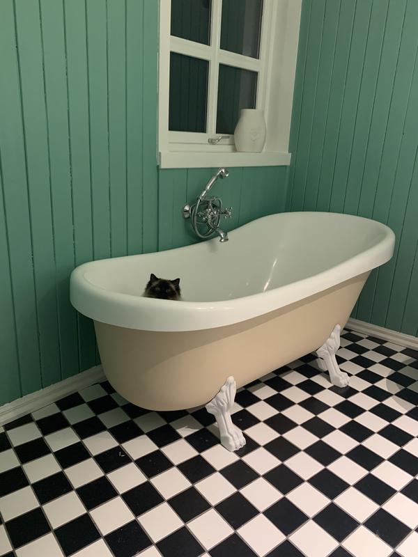 | Mooie update weer! Ik ben ff niet mee met de stucloper, moet dat nou 6 weken blijven zitten? Mooie vloer, en ook hele mooie tegeltjes op de WC boven. Heel tof patroon, zelfs al is het mislukt volgens jou | |