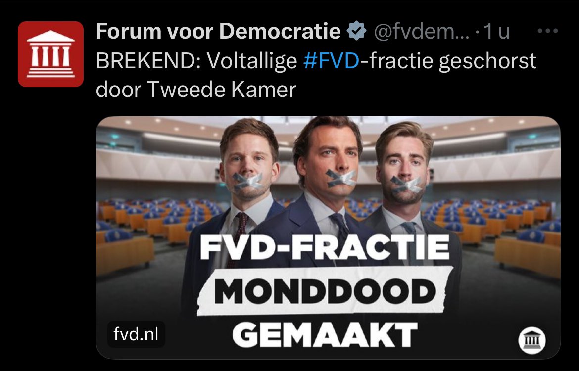 Ze hebben gewoon stemrecht hoor, alleen spreekrecht is ontnomen omdat ze zich niet aan de geldende regels houden.quote:Op dinsdag 19 december 2023 17:03 schreef Weltschmerz het volgende: