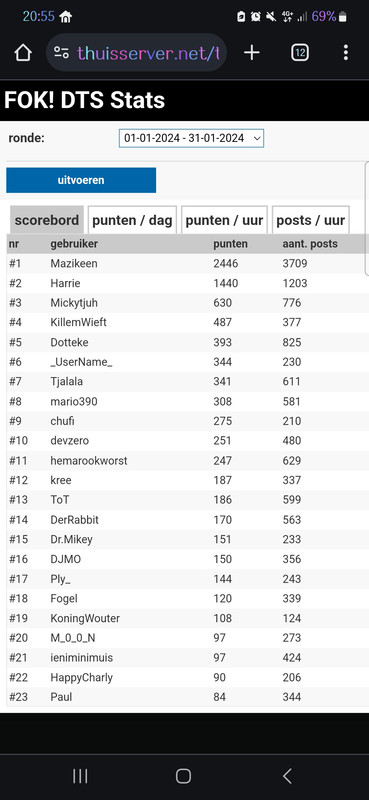Ik zat even te kijken bij de punten/uur en op sommige uren zijn er meer dan 60 punten verdient. Maar dat komt natuurlijk omdat een post meer dan 60 punten kan winnen en dus het uur waarin die post is geplaats er meer dan 60 punten zijn.quote:Op donderdag 11 januari 2024 21:05 schreef bondage het volgende: