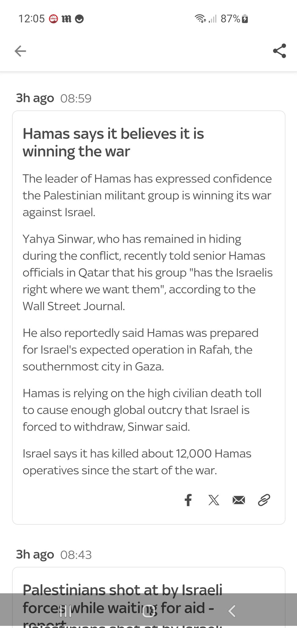 Ze geven wel om hun bevolking en offeren daarom en deel van burgers op die het daarmee mogelijk gaan maken dat Hamas als leidswijze nog meer terrein gaat winnen.quote:Op vrijdag 1 maart 2024 07:30 schreef Mylene het volgende:
