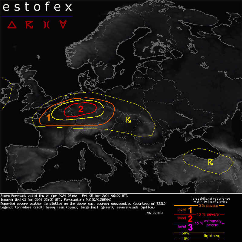 quote:A level 2 was issued across E Belgium, Luxembourg and central Germany mainly for tornadoes, severe wind gusts and to the lesser degree for large hail.