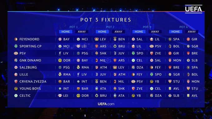Er zijn overigens twee beperkingen tijdens de loting: teams uit hetzelfde land kunnen in de competitiefase nog niet tegen elkaar uitkomen en elk team kan maar tegen maximaal twee teams uit hetzelfde land spelen.