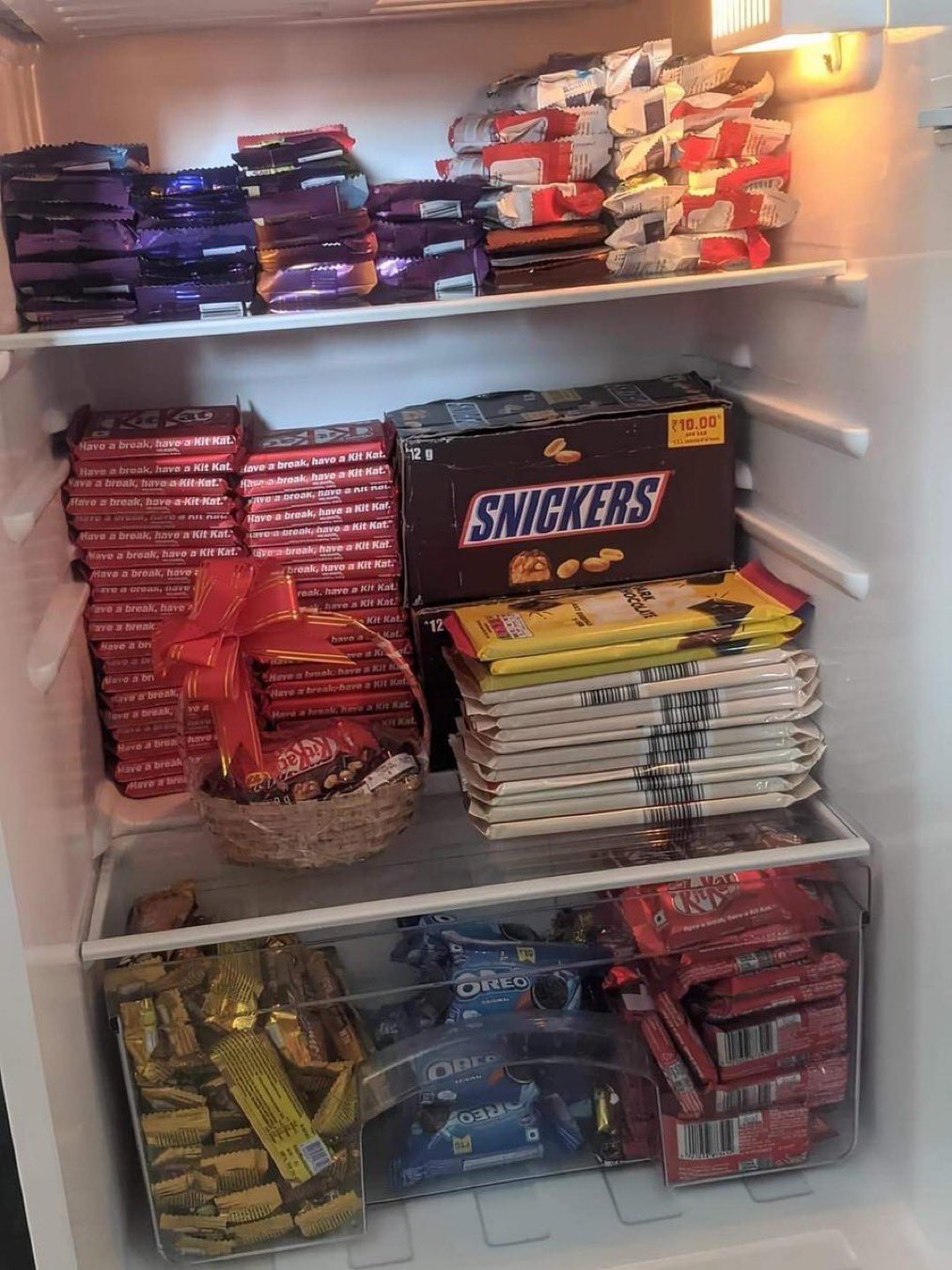 dat is heel veel kitkat. daar kun je er vast 1 van missen | |