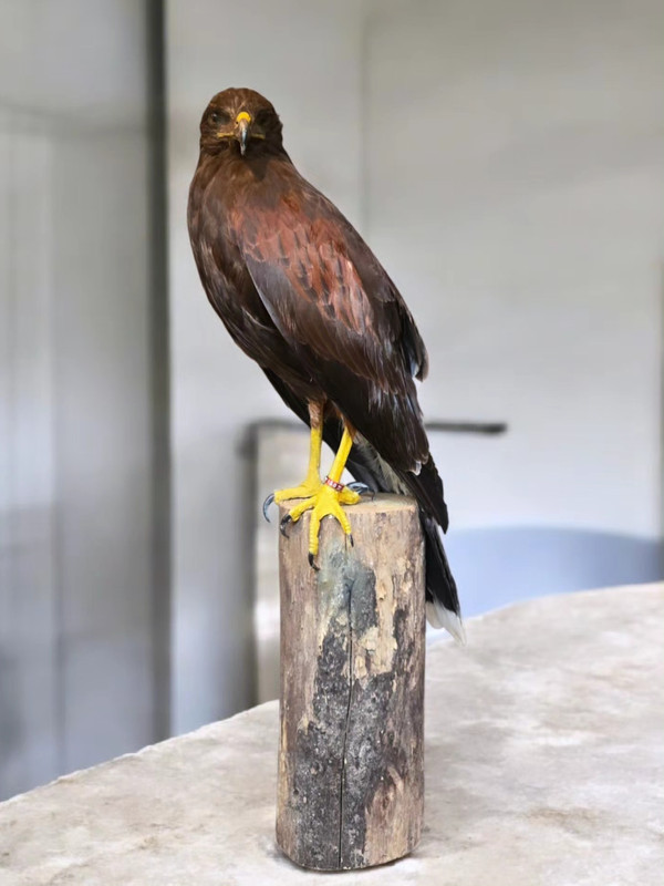 De rotte buizerd lag zo'n half jaar in m'n vriezer, toen er een woestijnbuizerd met zonder staart en kapotte vleugelpennen op mn pad kwam. Deze kon ik voor weinagh overnemen.