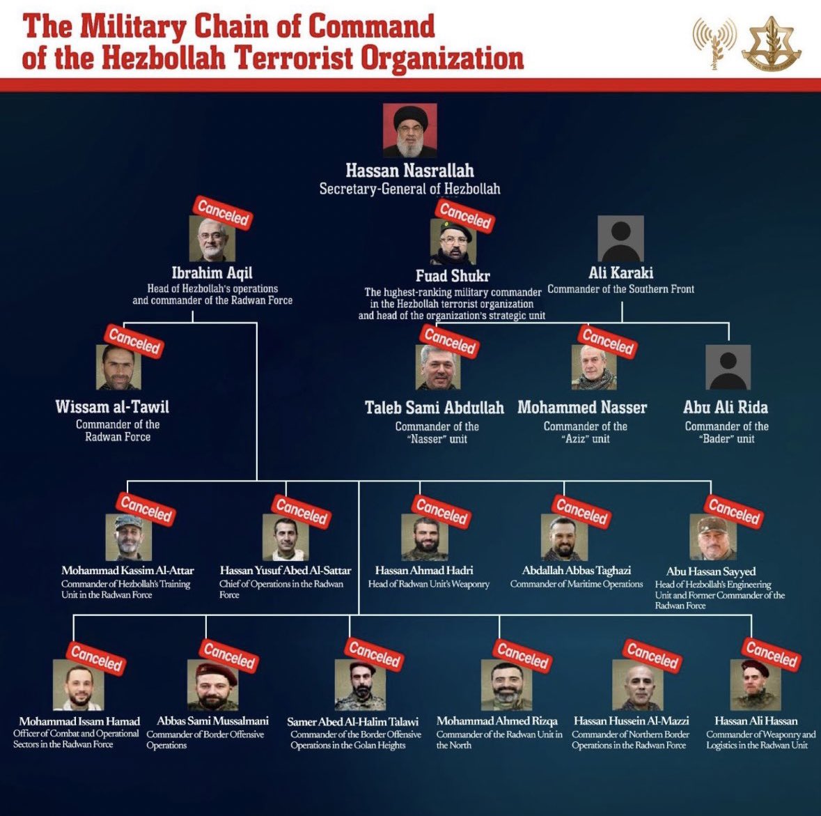 Israël is goed bezig, nog even en de totale bevelstructuur is ontmanteld omdat er alleen nog loopjongens over zijn.